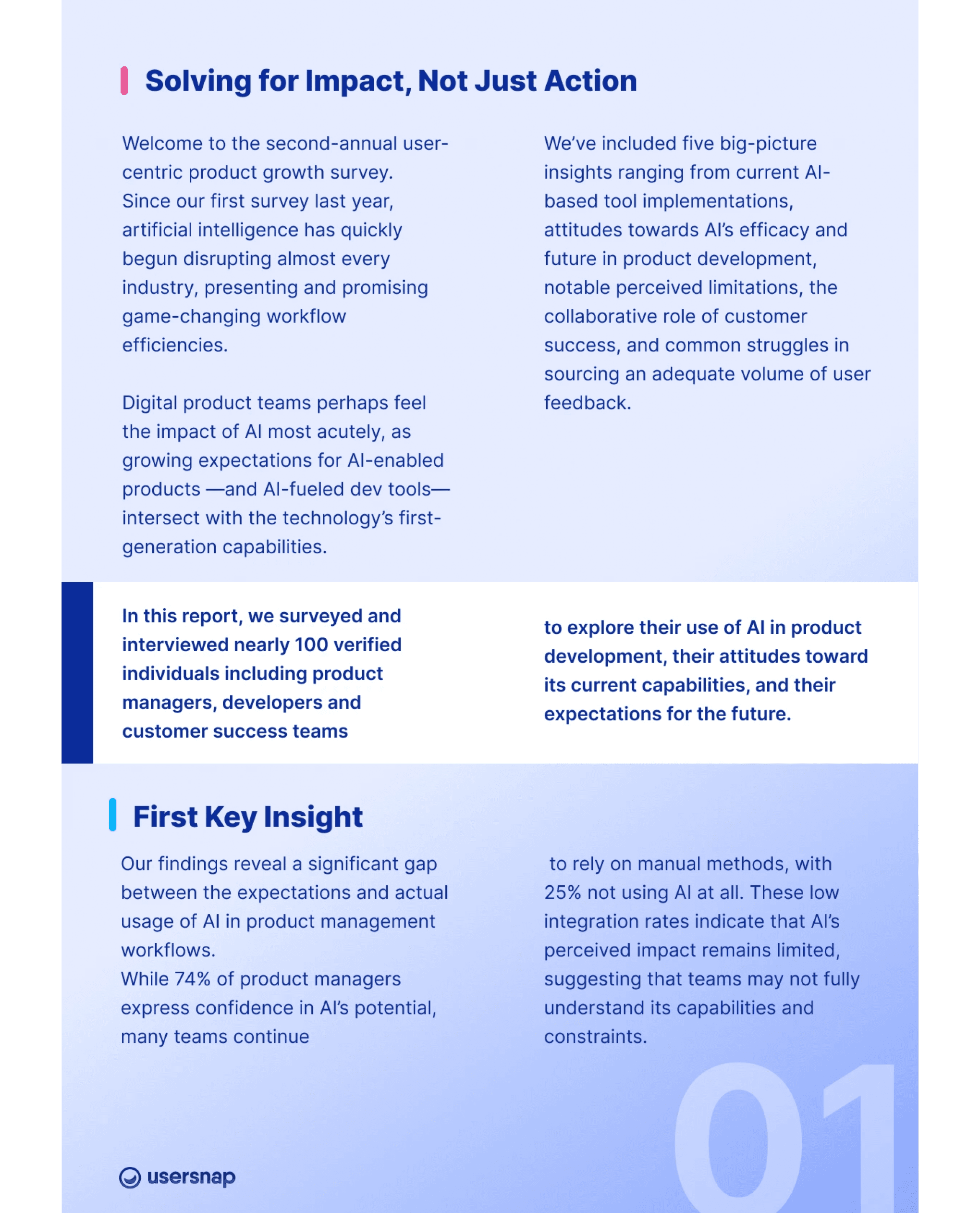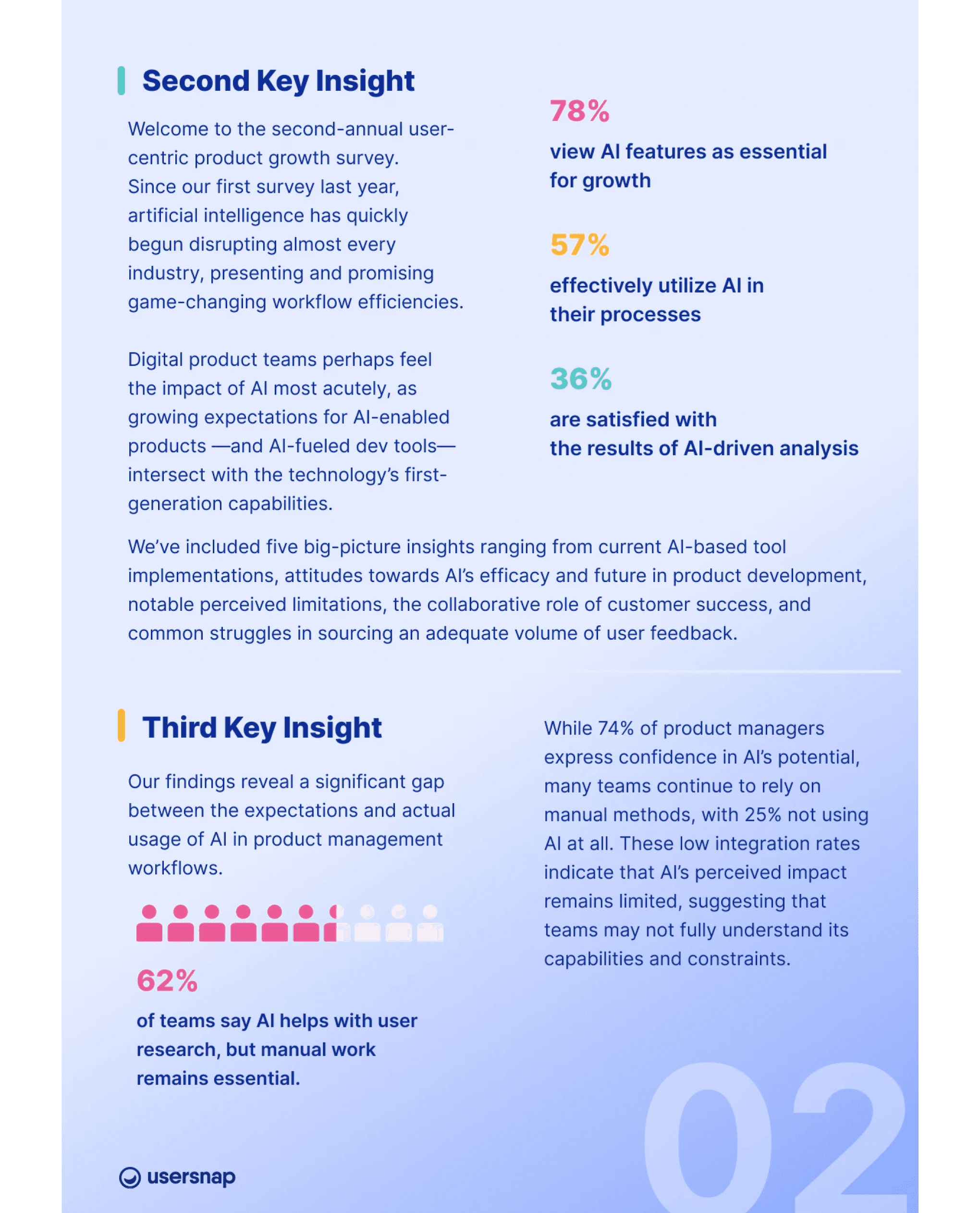By blending stylized product screenshots with custom iconography and a cohesive color palette, I created a professional report that not only communicated key wins but also reinforced Usersnap’s modern brand identity.